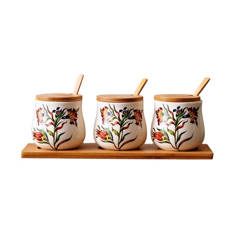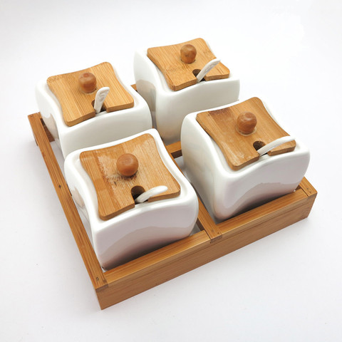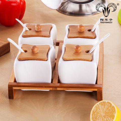 Bote de cerámica para condimentos de cocina, tarro para especias con cucharas