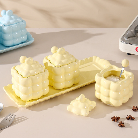 Nuevo tanque de condimentos de cerámica de malvavisco de color Macron, juego de tanque de condimentos para el hogar, tanque de sal de cocina al por mayor