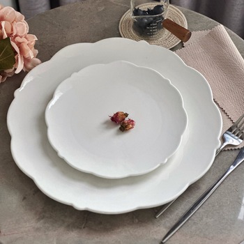 Porcelaine céramique de Chine pâtes salade dessert côté cuisine moderne dîner blanc bord festonné mariage assiettes ensemble pour la maison