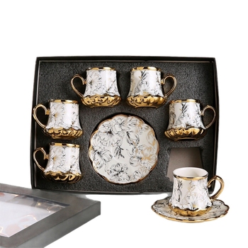 Tasses en céramique, lot de 6, soucoupe spéciale de luxe, boîte-cadeau, fournisseur de gros réutilisable et personnalisé pour les tasses à café turques en porcelaine pour la maison